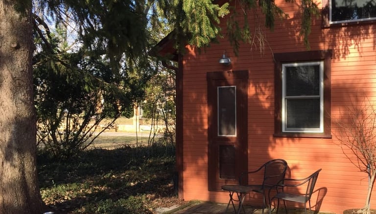 The Union Cottage Studio accommodates a maximum of three adults. There is a queen bed and a Sharper Image Fold & Go Slumber Pad, a coffee maker and full kitchen, filtered drinking water, private entrance, private bath, electric fireplace, ROKU TV, WIFI and patio. It is a full studio apartment in the Union Cottage at 309 Union St. Just around the corner.
